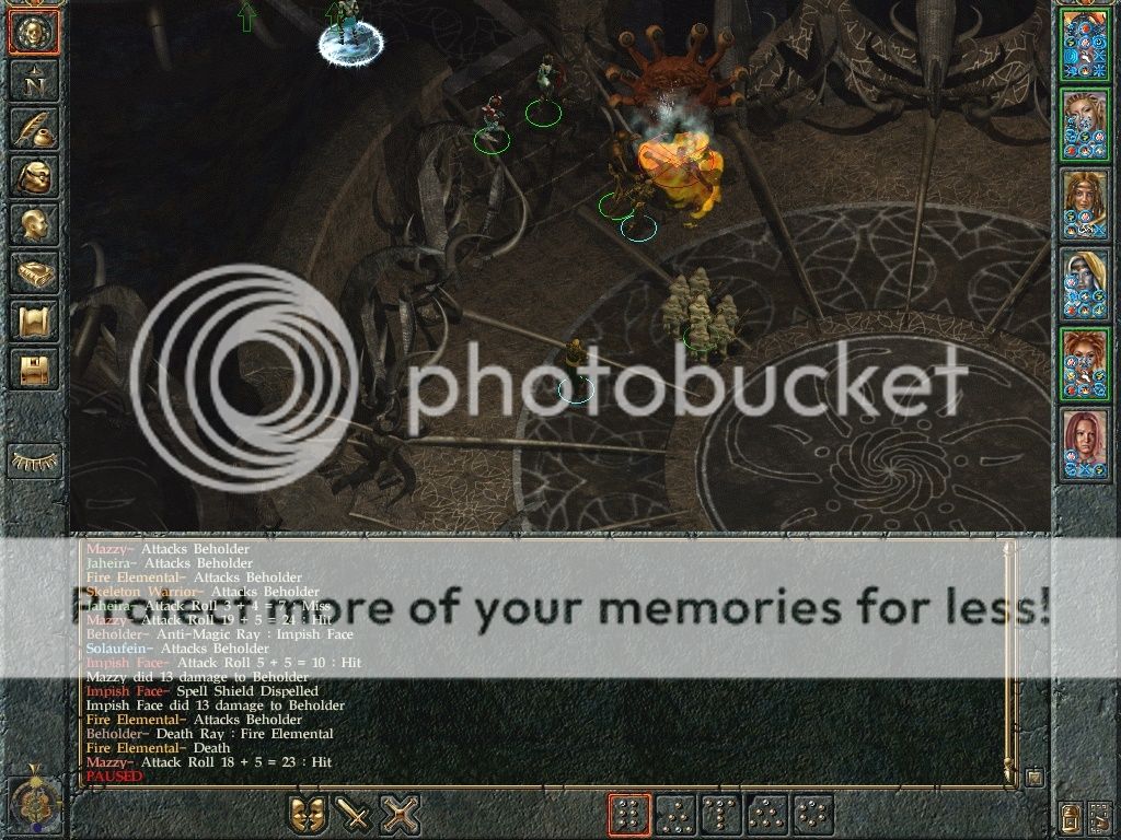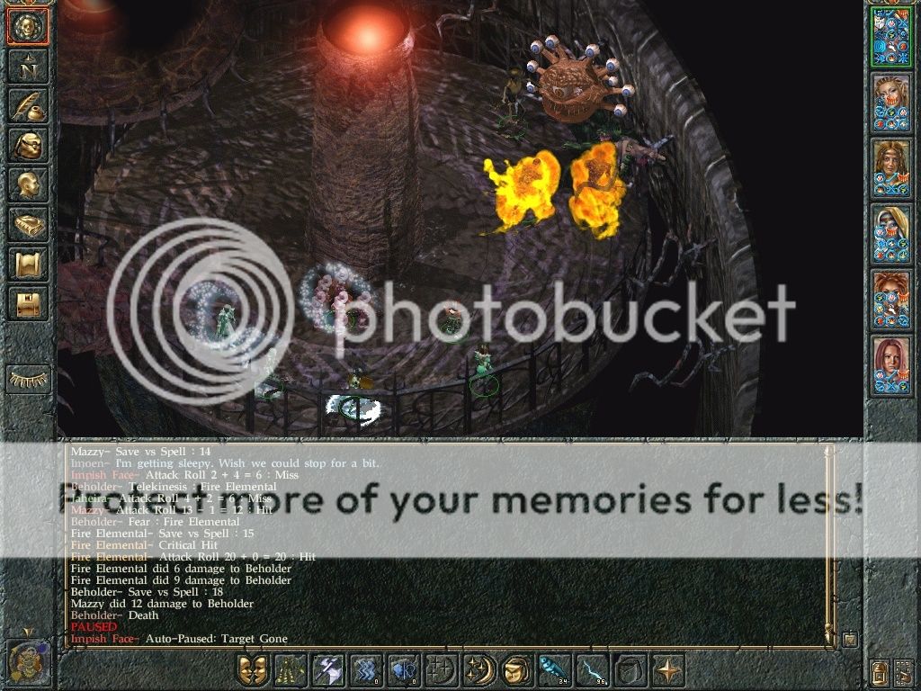 Now, Beholders. The group guarding the bridge I wanted to kill by few Ice Storms + Invisibility 10' radius after. Didn't really work. As soon as the 1st was cast, they float over to greet us.