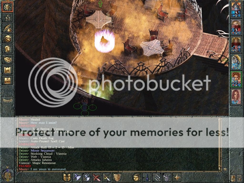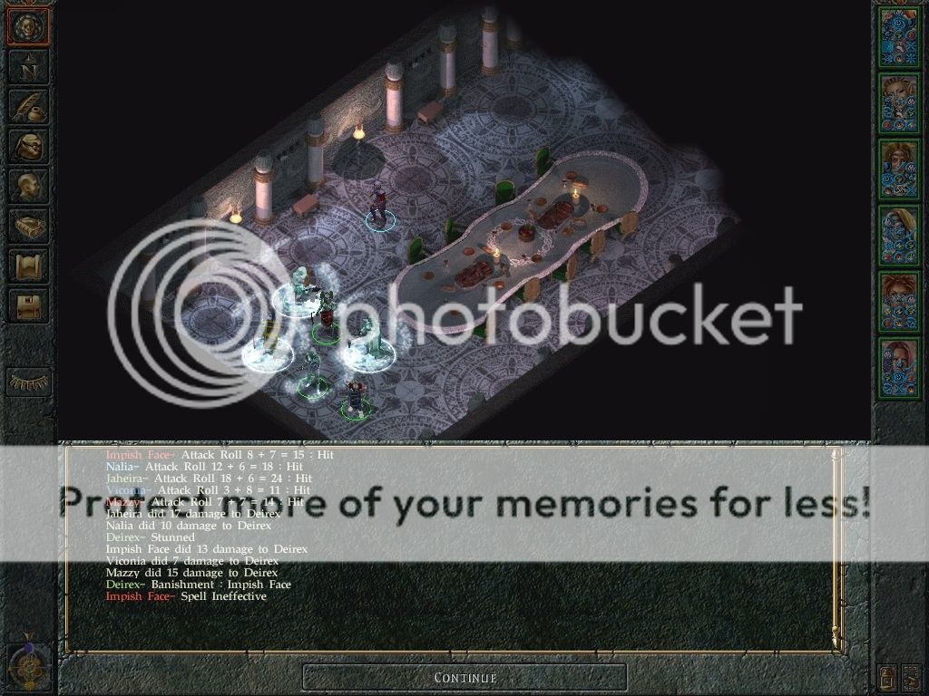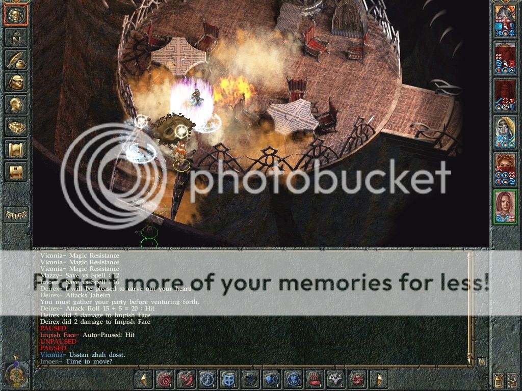 My Diviner starts debuffing Alhoon, while he summons and attacks from time to time. We all get hit by Remove magic, now Shaleen and barbarian (he's expendable however, ALhoon's attacks won't chunk) are vulnerable to his blast attacks. He gates in a demon, but we kill it very quickly.