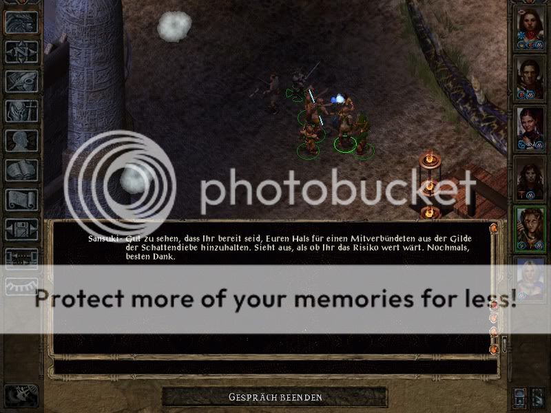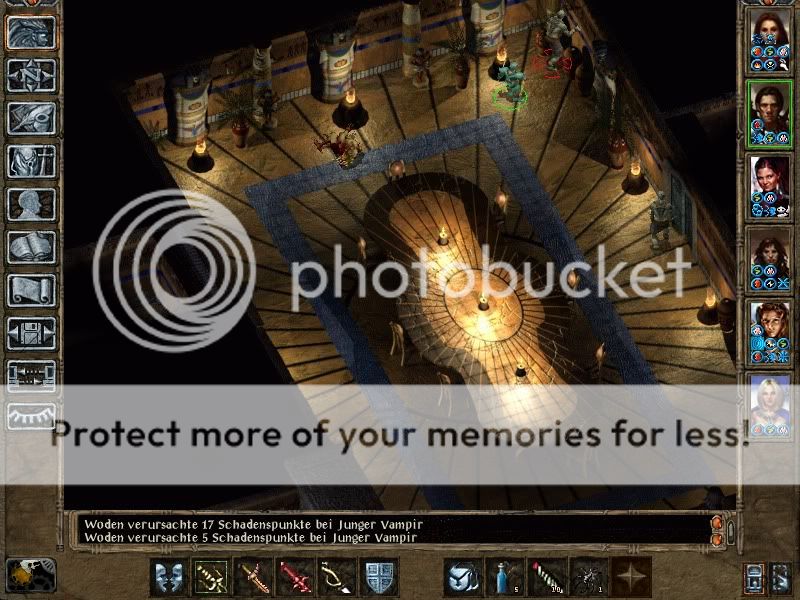 The group awoke in Irenicus' Dungeon, dismissed Imoen, Jaheira and Minsc and decided to go for some goblin hunting. With the help of a summoned Spirit Snake and a Spirit Wolf, the first level was cleared without any major incidents - the spirit animals did the work, the party did the looting. After freeing a djinn, fighting some duegars, meeting a suspicous looking human and defeating lots of mephits via spirit animal and forest being power, a vampire was quickliy defeated with some shadow thieves being next.