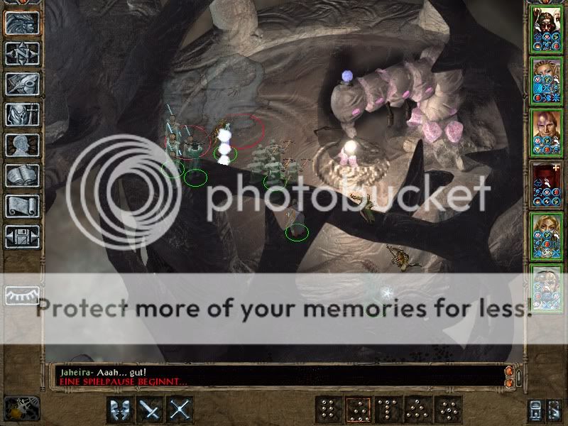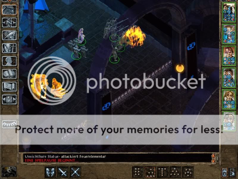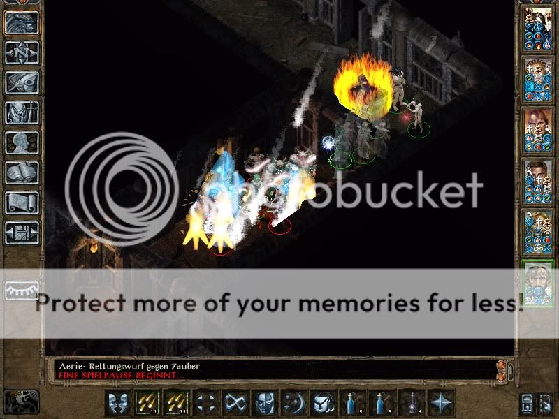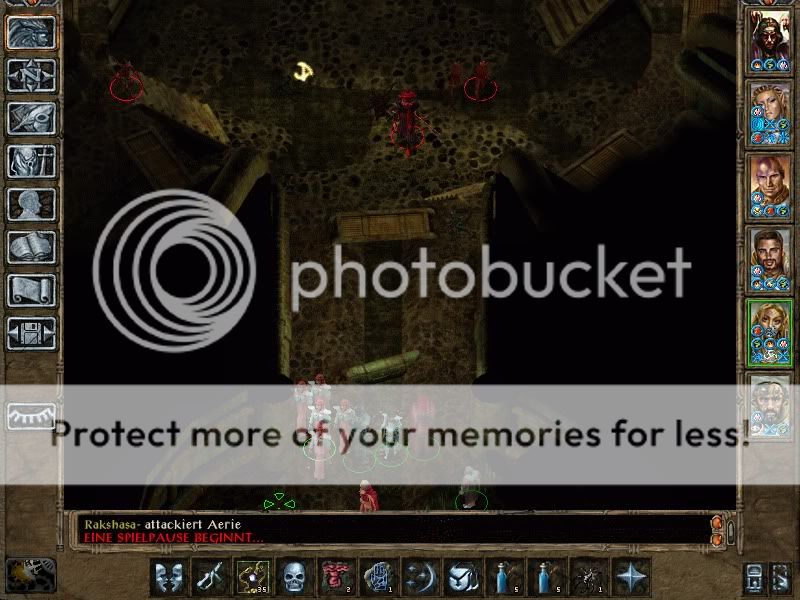 Then Saros and Torham, with the help of a Planetar, slew each and every one of the Efreeti guardians. Those use SI:D and illusion buffs for hiding, and are pretty high-leveled (Remove Magic lvl 18 was unsuccessful in all attempts, except removing Mirror Image of course), but have only Stoneskin as second defensive buff, no True Sight, no Breaches, and not a very good THAC0 either, so they were easily slain.