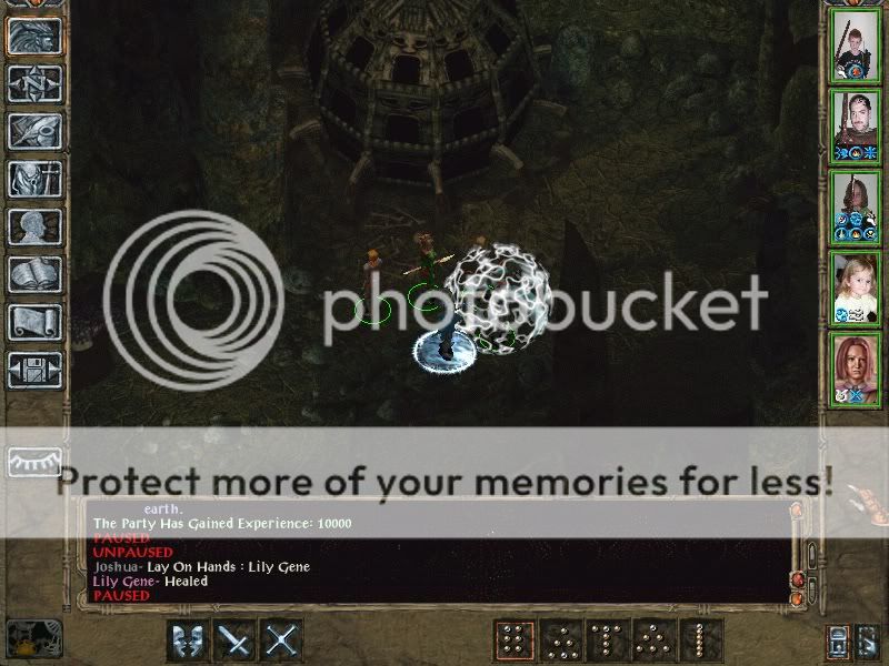 Therefore, the paladins recruited Imoen and headed back to the Underdark, which got Corey level 16 fighting re-spawns of the Kua-Toas (hey thought I got all you guys). She bought a freedom scroll, cast it, and then I clicked a "nothing" quickslot (spot where the freedom scroll was) and it interrupted Imoen's casting. Oops. Another 810 gold later, she cast it again, and then Joshua was returned to us! Thank you Imoen. We returned to the Copper Coronet and let her go, thanking her again for her help.