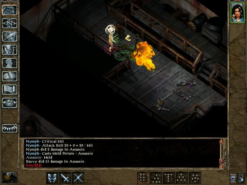 Alaya, the Fighter/Mage has Stoneskin, Mirror Image and a Trigger with Spell Shield, PFMW and Protection from Fire.
