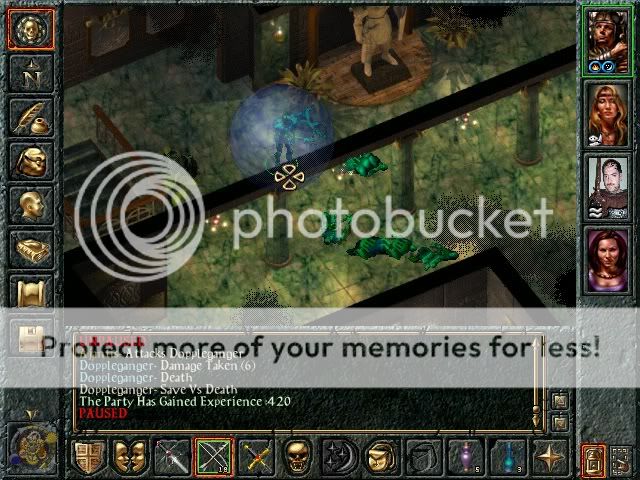 * Did something new with the skyship quest, don't know why I didn't think of it before. I had Branwen loot the components via sanctuary without fighting. I then reported my success to Thuibuild, which gaves us 4000 exp AND the 4000 for killing the Halraan (or however you spell that kind of mage that tried to kill us). This was enough to get imoen level 8. THEN I went back to the skyship component building, had Ajantis do lots of buffs including magic protection potion and borrowed the cloak of balduran putting his magic resist at 75%. Invulnerability potion for good measure. Needless to say the sisters stood no chance. Doing it this order gave me extra 4000 experience.