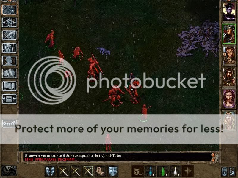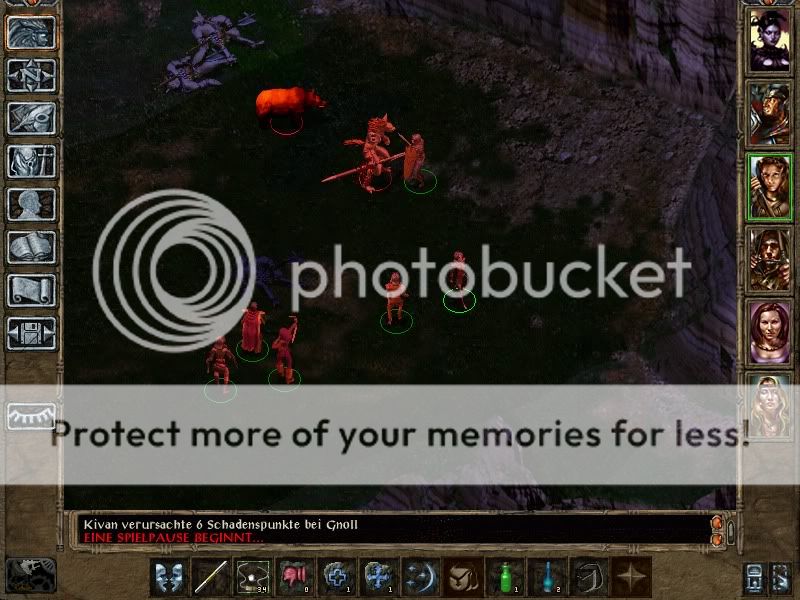 Next up was the Gnolle Fortress. Met my first Carrion Crawler, but he was blinded. The tome was replaced by a lousy bastard sword +1 (which I sold). Anyway, the Gnolls were rather easy, especially with a blind leader. Dynaheir was rescued and the group went back to Nashkell. Kivan complained about us not hunting the bandits, so I intend to quickly do the Nashkell Mines and the Bandit Camp next. This might be difficult - I know of the Amazon Party's ambush awaiting me, and we'll see how I can deal with Tazok's tent. For the way out, I'll definetly use invisibilty 3m radius, if I get this far.