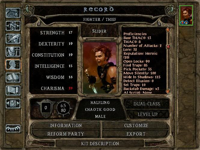 I decided I still wanted to get through Baldurs Gate with a Thiefish character, so I decided to make a Fighter/Thief this time around.