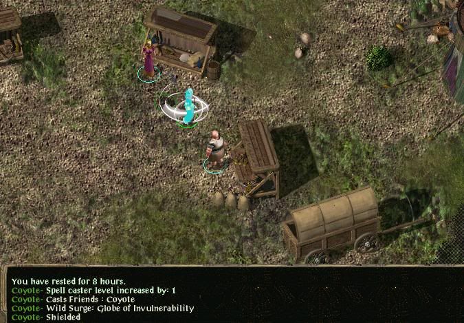 - Used invisibility to travel to Friendly Arm and pick up 2 rings and an ogre's belt for Coyote to wear.