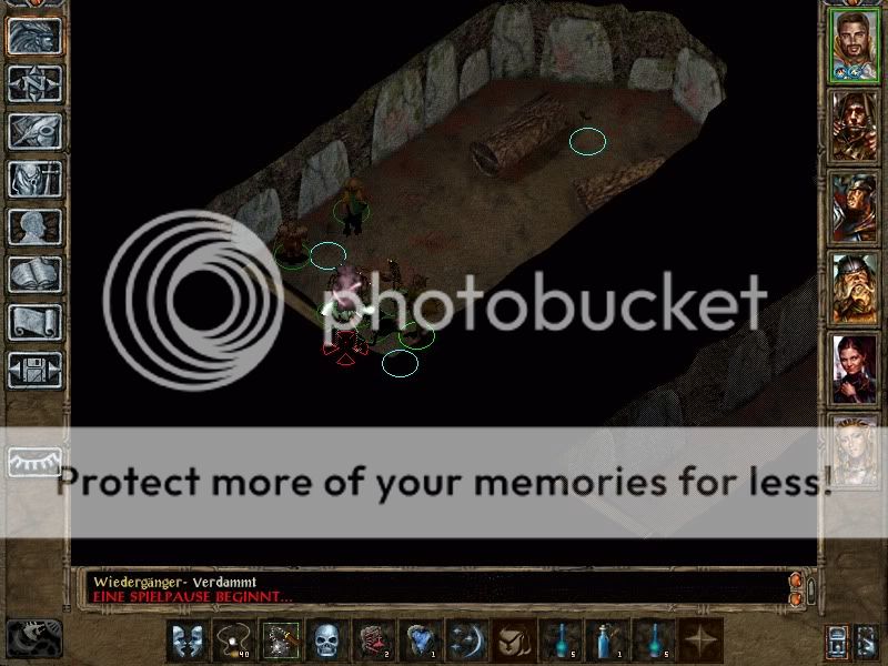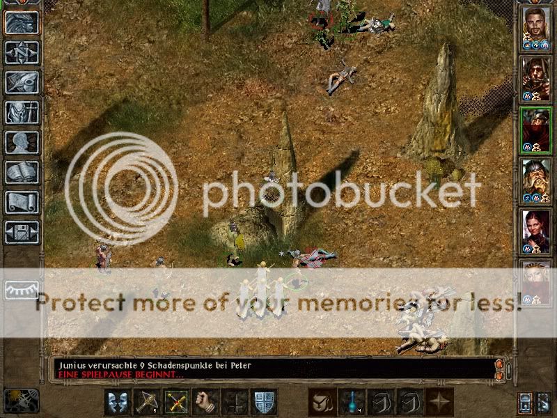 Next, I did something incredibly stupid: I decided to try Kargh (who ended the only previous SCSI-run I was talking about, so I actually should have known how powerful he was). With some skeleton warriors ready, the party attacked him, but after Ulrichs dispel magic didn't dispel his haste, MI or stoneskin he quickly used phantom door and minor globe of invulnerability. Junius drank a potion to gain 50% magic resistance and resisted chaos, but things turned bad after that. A fireball killed Jehoash, some hits were enough for Onesiphoros, Ulrich barely managed to buy Drusilla some time, a paniced Junius was hunted and defeated, Ulrich eventually died. Padma and Drusilla used the only 2 invisibilty potions in posession of the party to save their lives after grabbing as much equipment as possible. I actually managed to save all the magical equipment excluding some less important potions, but with hard times, even non-magical equipment can be really expensive. Of course, Padma was encumbered, but she used her wolf cloak to gain 18 strength, and the two of them ran to the south. While Kargh managed to cast detect invisibilty, they were already at the edge of the map when he was finished, so they could return to the Beregost temple and raise the other 4 party members, buying new equipment at the forge.