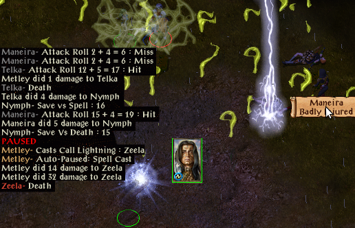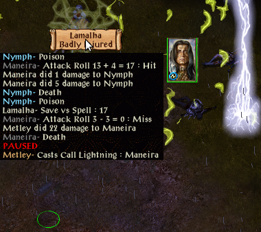 Back in the city of Baldur's Gate, Cythrandria and her goons were defeated primarily with STR 23 potion, potion of absorption, potion of magic protection and greenstone amulet. The potions were still active when the battle was over, so then headed straight to Slythe. Arrows of dispelling made Slythe much less of a threat. Kristin wasn't too much problem, since his potion of magic protection was still active.
