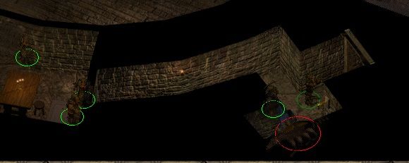 With Rill and Yeslick released I force a door and when nobody investigates I sneak further into the mine. A hobgoblin blocks me, then follows and I cannot hide. It turns back and I make the entrance of the mine temple, convincing the guard inside that I follow the Black Hand of Cyric (copying Grond0 in multiplayer runs here).