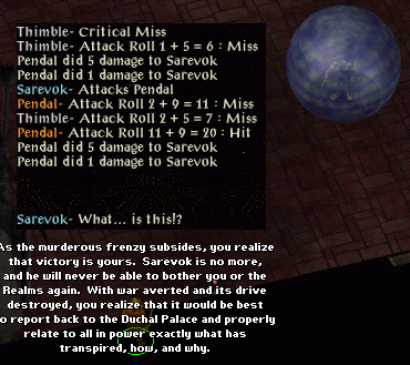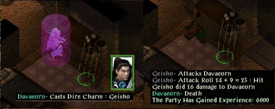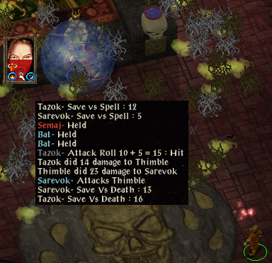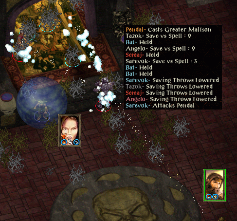 They were bleeding from numerous wounds before all of the guards were hopelesly trying to free themselves from entanglement. Druids tried resting again, fought the guards again and finally decided to retreat and sleep upstairs. Once rested they returned and fought their way down to the last level where Davaeorn, mines supervisor, was located. Druids couldn’t do anything about the traps which protected him and had to fight two battle horrors in a spectacular