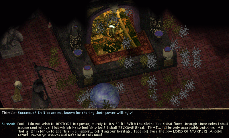 Then they searched the area and found letters which stated that Throne leaders have gone to some sort of meeting held in Candlekeep’s library. When they returned to duke Eltan he provided them with a tome which would allow them entrance inside their former home. And so they returned to Candlekeep.