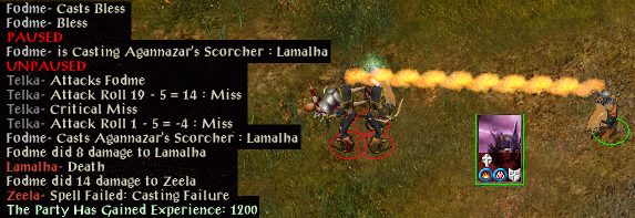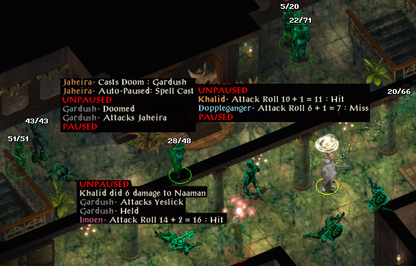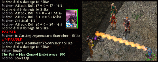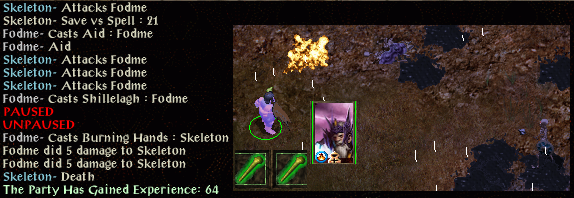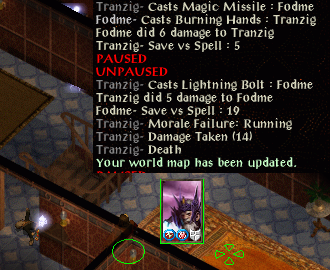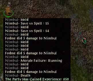 Resilient Sphere expired. Remaining hobgoblin was shooting so I ordered him to get lost (I couldn’t just kill him, because I wasn’t absolutely sure that I won’t get experience for that). Paralyzed second doppelganger, while the guard finished the first. I heard someone using a bow – the hobgoblin came back. Told him to get away once more and resumed paralyzing. Then I noticed the level up symbol on my portrait. I scrolled the log and learned the terrible truth – it was the hobgoblin who dealt the final blow to the doppelganger, not the guard! That was that shot I heard. Even so, I didn’t kill the damned beast, as I decided to continue. I might have gotten the experience (1333 in each class, leveled as thief), but I still had 0 kills, so “pacifist achievement” was still in my range (and I didn’t use that level up, of course).