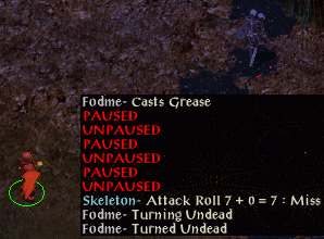 Leafed through letters, grabbed the loot, went to the surface – this time sneaking past the jellies. Used anti-undead scroll, robbed the graves (especially potion of invisibility, wand of summoning and potion of freedom) and took the dagger +2. Went to the Carnival, sold the loot, then to Nashkel, charmed Nimbul made him cast