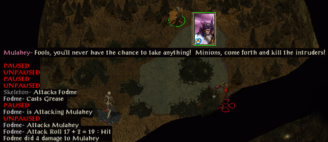Lightning Bolt but failed. Ordered Hakt to catch the lighting – he managed to get hit twice, but lived. I ordered Venkt to attack Britik and waited for him to die (Venkt, not Britik). Same with Hakt. Only that he actually hit Britik and the latter failed his save. So I ordered Hakt to escape in order to get Britik away from Raemon, then moved to heal the gnoll. Raemon saw me and moved to initiate dialogue, Britik turned as if he wanted to hit me (even though he was still neutral, which was strange on it’s own), but I hid immediately. Britik finished Hakt, then I grabbed his bow, healed Britik again, hid from Raemon again, looted Venkt and moved to the exit. Recalled not looting the chest (too busy watching the