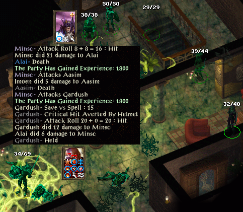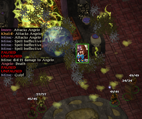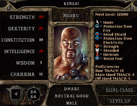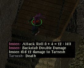 I then helped Alanna’s neighbour back to full strength and killed another assassin in the process. I then went to get a sword for Perdue which pleased him greatly, though you wouldn’t have guessed it from his manner. I was attacked by the household of Lady Valen, and by taking them on a few at a time was able to prevail. I then sorted out the family argument between the Dudleys and proceeded to Nashkel. There I did some babysitting before helping Albert find his dog. After that, I killed the fastest dart thrower in the west and his accomplice.