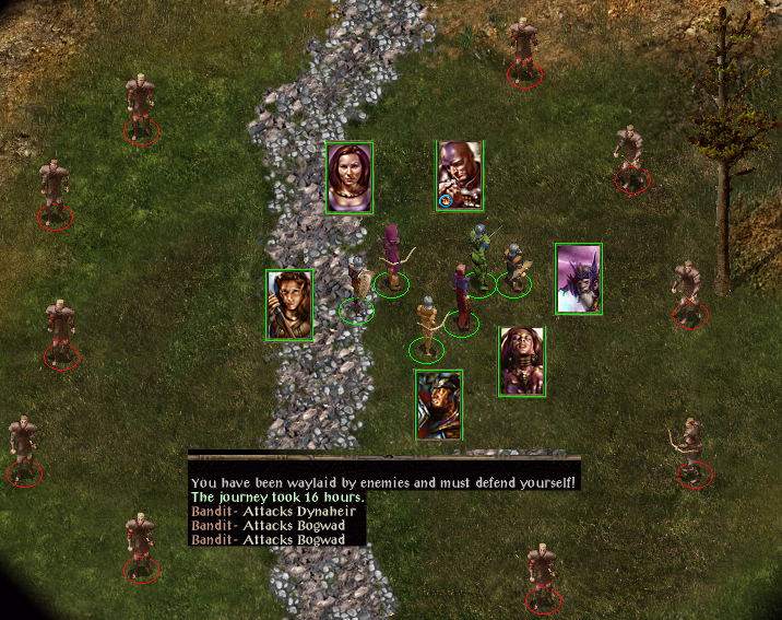 Heading northward, first of all I charmed the caravan guards who disposed first of Tarnesh, and then some hobgoblins. Sadly the guards were killed in the battles. I restored Joia’s ring to her and again went north where I helped a frightened widow being pestered by her zombie husband. I then helped a young priestess against some evil fishermen.