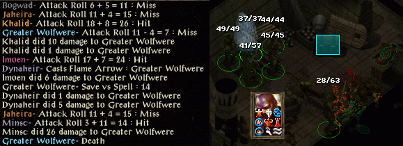 wolf hunting along the way. While we fought the ogre (we'd gotten it to more than half dead) we happened to wake up a xvart pack. A well-timed and -placed Entangle from Jaheira kept them busy until we were done with the ogre.