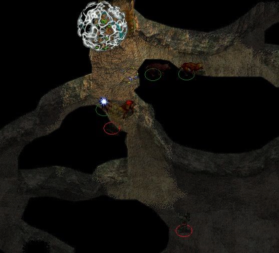 We quickly cleared the top level of the mine, ensuring a clear path if we needed to return. Then, when we went down a level, we were attacked by hordes of fighters, Black Talon, all aided by a mage. Again chaos was the worst problem, and I had difficulty fighting through the bodies to attack the mage. Even after the mage had fallen, some of the remaining guards remained a problem until “holy smite” was cast. Some ghasts were also killed with that spell. Upon meeting up with Yeslick, we sent him armed to The Friendly Arms Inn. We felt that he had endured enough already and probably would not appreciate seeing what had been done to his beloved home. We gave gold to some slaves to allow them to escape and then went down to the next level.