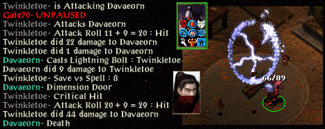 Twinkletoe, barbarian 6. 77hp. 172 kills, greater basilisk.