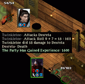 Nimbul and Tranzig don't last long, nor does Ardenor Crush. The bandits surrounding Taugosz Khosann make a mess of Twinkletoe and hit Ether twice as we retreat meaning a full heal is required. A second foray has similar results but Taugosz follows and we decide to have it out with him anyway. Twinkletoe uses a rage and three potions while Ether is behind Taugosz adding a flurry of blows.
