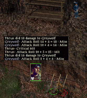 Once the Candlekeep chores are over it is time to get ambushed in the woods and run for my life. Tarnesh manages to scare me at the Friendly Arm Inn but a Shield spell keeps me alive until I recover but the guards kill him while we each dodge quarterstaff blows. Some brief experimentation sees me adopt sleep then Quarterstaff/LMD repetitions, doing so allows me to deal with Joia’s hobgoblins, Mirianne’s ogrillions, an overgrown fox after a chicken dinner, Gnarl, Hairtooth, Unshey’s ogre, Caldo and Krumm.