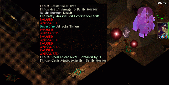 Sunin send his boys outside to play, Joular tries blind mans bluff while the other one gets to juggle with Magic Missiles. They’re less troublesome than my own spells (red-dot screenshot that Grond0 has been expecting for some time).