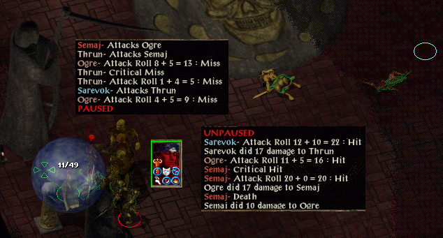 Angelo is first to fall. Tazok has appeared and I move slightly too close, meaning Sarevok joins in again. I take a few hits but my hit and run approach is too much for the half-ogre. Semaj has mirror images up and is proving hard to hit so I give him a wand full of ogres while occupying Sarevok. I move in for the kill but an ogre beats me to it and Sarevok almost kills me.