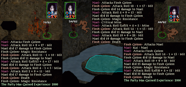 Time to investigate Nashkel Mine, using invisibility. A skulltrap clears three kobolds from a bridge while mirror images help avoid the two traps. A pair of spiders experience another
