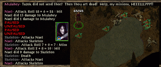 over the horizon round the corner skulltrap. (oh dear, nothing suitable to stop his spells so will either have to run for the exit or cast invisibility if aura is clear). LMD disrupts his first spell, and the one after that. Same for his third and he panics. A fourth LMD is followed by chromatic orb (saved) and the penultimate LMD kills him.