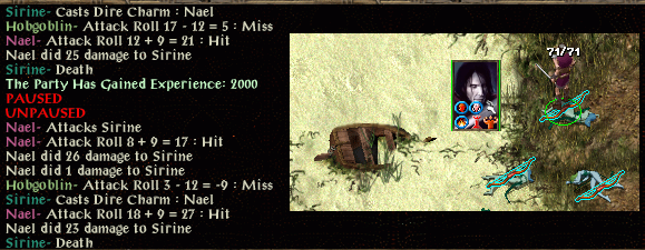 Ardrouine is helped and then Noora tries her luck against a trio of sirines. One sirine is skull-trapped but a second stands beside a skull to cast charm person - Noora is aura’d but saves (rolls 14 with save at 9) and LMD’s the sirine. A third sirine also casts charm person beside a skull, forcing a second save (also 14) and then manages to hit with a poison arrow. Noora retreats until the poisone subsides, heals slightly then tries a final skull trap. She decides to add another skulltrap but gets some