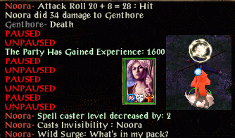 finishes them off too. Noora now has two empty level 4 spell slots so needs to go shopping. The Amazons have a pile of loot so the familiar has to walk flap around for now and some unidentified flame arrows are dropped.