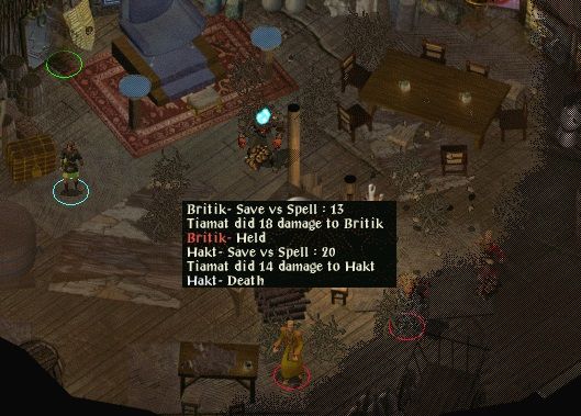 Three more widths have him almost dead so Sharrde hides (successful at the fourth attempt) and hits with Varscona (47). Four more attempts to hide and Sarevok concedes (without only one of the additional items - one arrow of dispelling - required to halt him).