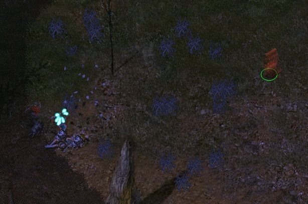 Trint tried to have Korax take down Kirian, but that didn't work out at all, Korax was quickly killed and Trint failed to hide in the shadows and was spotted, and incidentally unbuffed! Uh, oh. Trint put up his greenstone amulet and ran for his life. While running, he would try to hide, but encountered gnolls and basilisks in the way too...after running for about 1/2 the map Trint finally hid in the shadows successfully. He decided to leave Kirian's party alone for the moment, and destroyed the basislisks in the southern portion of the area, including a nice 88 pts. backstab on a greater basilisk, killing it in one shot.