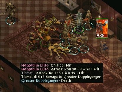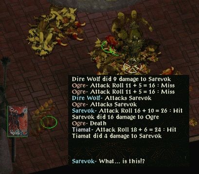 Used scroll of magic protection and invisibility to get through the maze, then rested to prepare for Sarevok. This time Tiamat had brought along 2 wands of monster summoning to help him. Sarevok worked his way through the first, but at the cost of being badly injured and there were still 10 charges left of the second when Sarevok despaired of being able to reach Tiamat through the heaped carcasses.