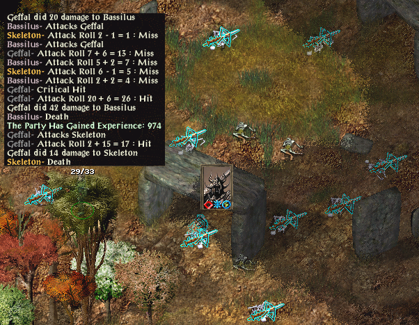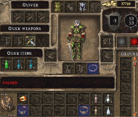 For most of the game, Yerlat has tanked enemies with plate mail, and he got great use of the sleep wand before it poofed. He was rather desperate for gold, so I did something new for me. He went to the Ankheg Farm map and went invisible via spell. He looted Farmer Brun's son's loot while paused, then immediately went invisible via spell once more. This way he never was attacked by an Ankheg, which I wasn't sure he could take one down at that point. This garnered a fireball wand (so don't need necklace of missiles), as well as some loot to get the greenstone amulet and some potions in prep for the Nashkel Mines.