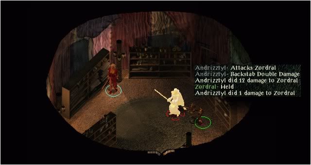 So Imoen ran it in a circle around Andrizztyl while strumming her lute to embolden Andrizztyl's archery... well, after two wasted Blindness spells... This wasn't entirely a jointly planned battle, however...