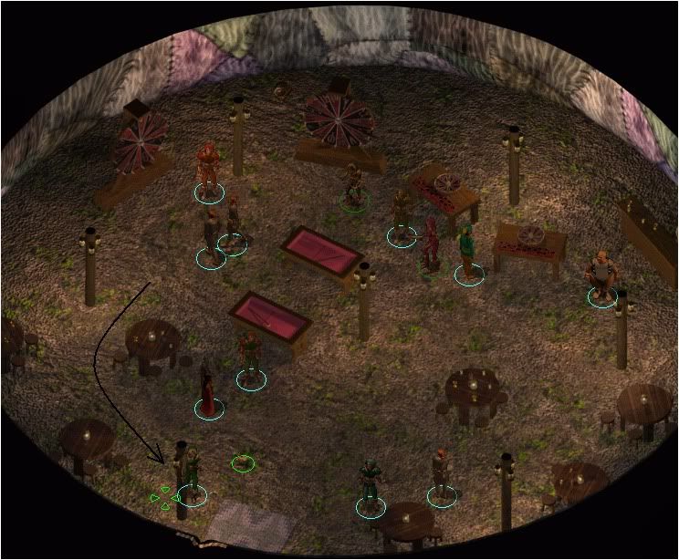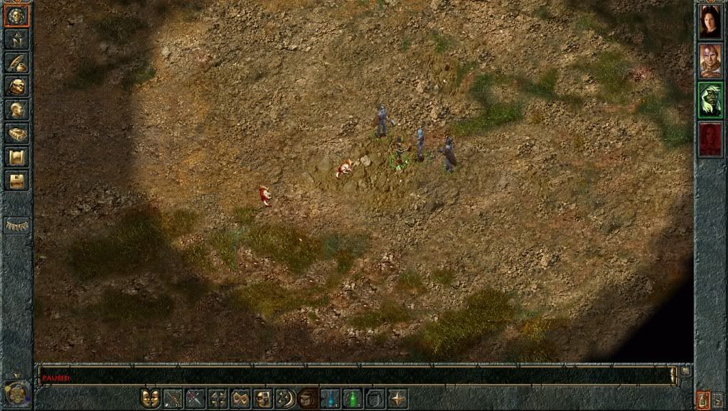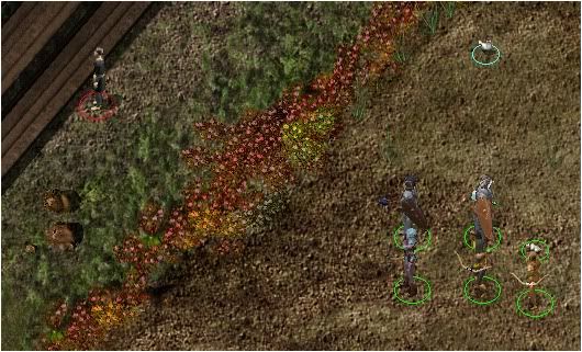 Then it was the area south of south of Beregost. At first the Duo took the eastern edge straight south, and when Andrizztyl decided to take a shot at some archer-kobolds, they got only one shot at him... just one... which hit AC3, of course... and knocked him to nearly dead... so they skipped the rest of the area and headed to Nashkell. After trying to cast Hold on Andrizztyl- who ducked outside the inn- Neira came out and tried to cast Hold on Imoen- who ducked inside the Inn- and subsequently became the third Blindness victim. As the other bounty hunter Greywolf had done in a previous life, Neira started darting all across the area before finally catching enough missiles to stop running...