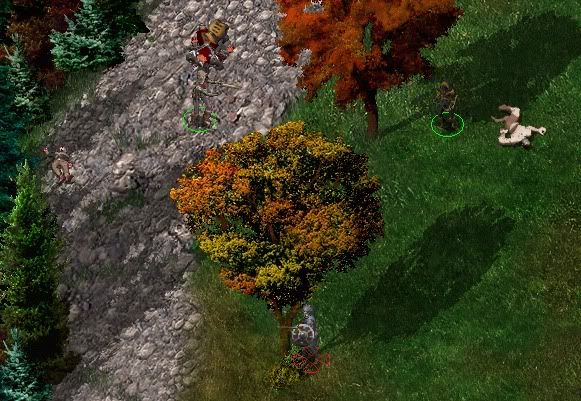 And after pickpocketing a paladin for the shield he would be giving up eventually, the Duo set off... And now nearly everywhere reached by the former Andrizztyl Quattro has now been reached by the Andrizztyl Duo. They started off from Beregost to clear the Temple area where they lured Cattack away from his brood of blue-circle thugs. Once killed, however, the brood simply stood there like a snake with no head... The Duo also managed to stumble into the wolves [something I've tended to leave for later], but they managed to outrun them at BGT walking speeds... and left only the vampire wolf out there... somewhere...