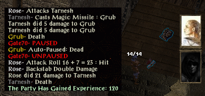 In contrast with the initial session Gate70 stuck with Ajantis throughout the session. That took a certain amount of grit given that the game was not giving very helpful feedback!