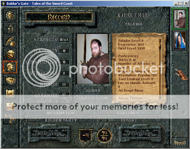 Parden the dwarven level 2 fighter/level 3 thief entering Trilogy no-reload challenge: