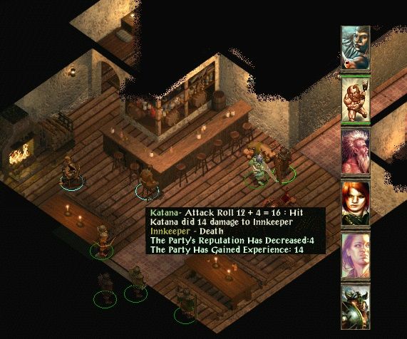 Kivan and Imoen scout around reporting that Tracea Carol is in some sort of trance and her six cult guards have 100 or so arrows +1 in their corpses. Klonk tells everybody to buff, including a few potions. Then some more potions. A few more potions. Maybe another one or two. Tracea Carol barely lives to see the party spread out and Klonk reach his (BG1) peak.