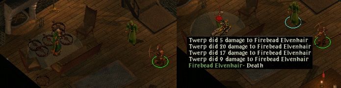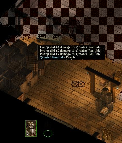 Eventually I headed into the yurt, and found him, along with about 10 archers. I droppped my second skull trap on them, again less than overwhelming, and they were angry, so I tried a glitterdust. Great. Mowed down a couple, but it wore off really quickly, and I was losing HP fast, so I ducked outside, backstabbed the first archer that followed, and meleed the second. I set a trap outside to simplify a repeat of this, and stealthed back in. Another blindness on Taugosz took, so I finished off the archers, and ended with a backstab.