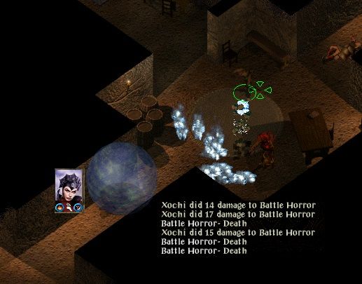Down to Daveorn where the wand of frost was used for the first time on the battle horrors - I was surprised at how slowly it cast the first time though and Xochi took her first damage from a horror as a result. Protected by a green scroll she had no problem in finishing Daveorn off.