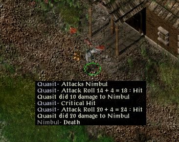 At the mine the quasit beat up Mulahey and did then did the same to Nimbul - will he ever learn not to keep missile weapons equipped when being attacked!