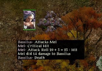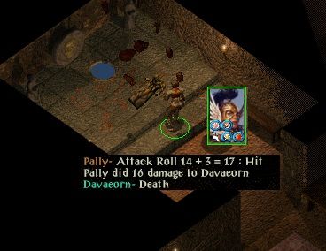 During this, Edwin and Imoen threw some spells at her. I carefully read the description for Physical Mirror, and no, it should not bounce Flame Arrow. It did not, but get this: it DID bounce Melf's Acid Arrow! Edwin had to suffer his own spell. Annoying. Tamoko cast Unholy Blight on Imoen but she saved and suffered only minor damage. Edwin had a charm spell throw at him but he saved. Hmm, could have been interesting otherwise. I wonder what the game engine does with my mages if I have no scripts active?