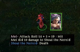 Since I thought she would be owned in melee because of Tamoko's buffing spells, Viconia circled around her until the Physical Mirror wore off. I love her battle cry: "Stupid cretins".