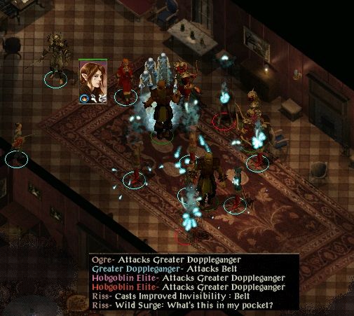 Hehe, nice one, Viccy, and apparently that spell does not have a large radius of effect. I was of course ready to hide anyone that would become visible. I waited out his obvious buffs. I was sure he was having Stoneskin up (next mod setup, I will leave the Stoneskin graphic alone. The beauty of the characters is not quite worth the lack of info about enemies' Stoneskin status. Would have loved a mod that would only remove the graphic from my characters) and I can't wait that out if I am ever going to get through this.