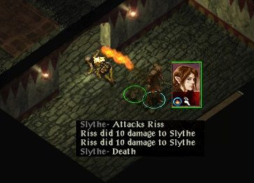Great, I feared him the most. His big damage spells, disabling spells, de-buffing spells, Flesh to Stone, you name it. Only the 'junior' of the three mages left now. And to top it off, that skeleton warrior ran down towards the entrance, saw the fully visible Viconia and we had our next melee brawl (with an initial backstab from Shar-Teel) without anoyone else interfering.