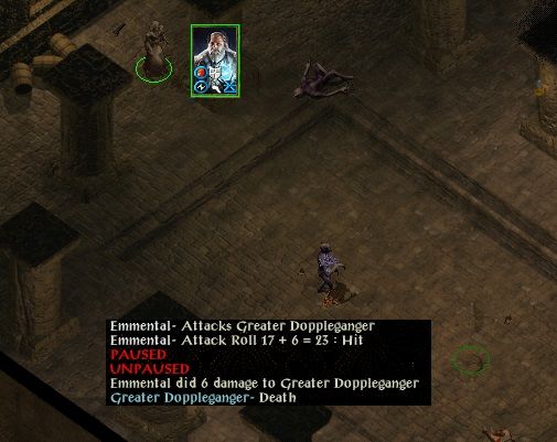 Tiax has a small buffer window before the "next tick" of DI kicks in (similar to True Seeing). He uses that time to go invisible, and run back to the group. Angelo pokes his ugly face too far out, Edwin uses Paralysis Wand on him. The first attempt was succesful, and Angelo becomes a skeleton soon after. Grim used a Fire resistance potion to bash his fireshield, others attacked with range.