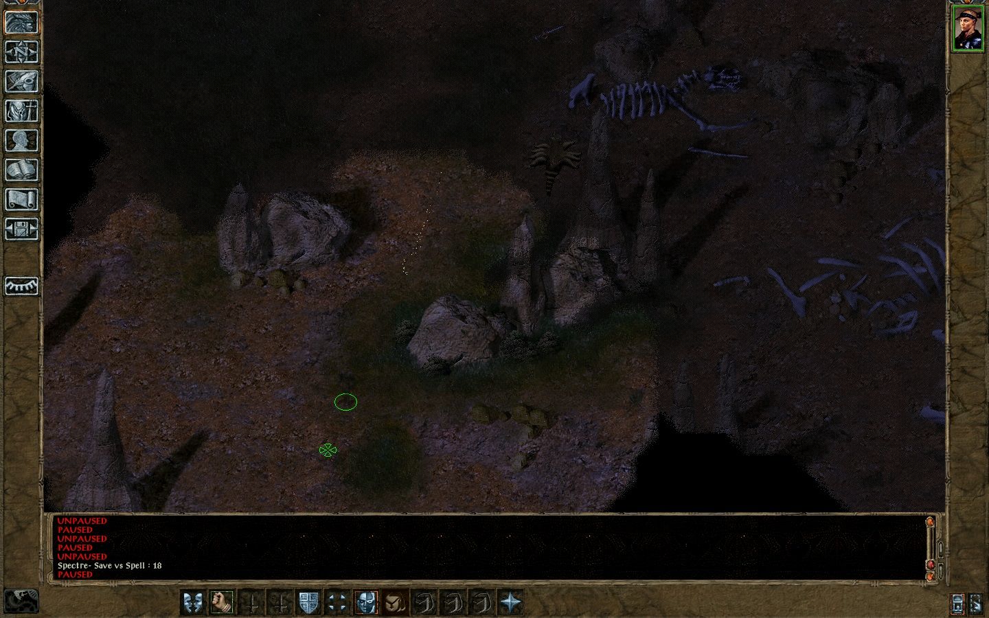 They started in the Cloakwood by letting the ettercaps play with some summoned skeletons. Moving on through, their next stop was Drasus and co. at the mine. They were comprehensively defeated with Rezdan silenced, Kysus backstabbed and Drasus and Genthore held - meaning the summoned skeletons weren't really needed.